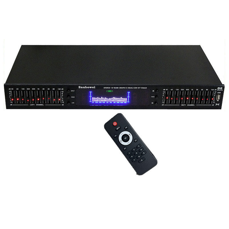 220V Black Stereo 10-band Graphic Audio Equalizer Receiver Treble and Bass Adjustment EQ Built-in Bluetooth with Remote Control