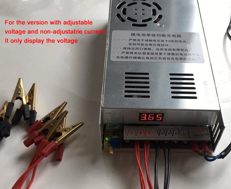 220V Lithium Battery Cell Balanced Charger + 4 Pair of Wires Fixed 35A 2.70-4.85V Adjustable with Charging Indicator