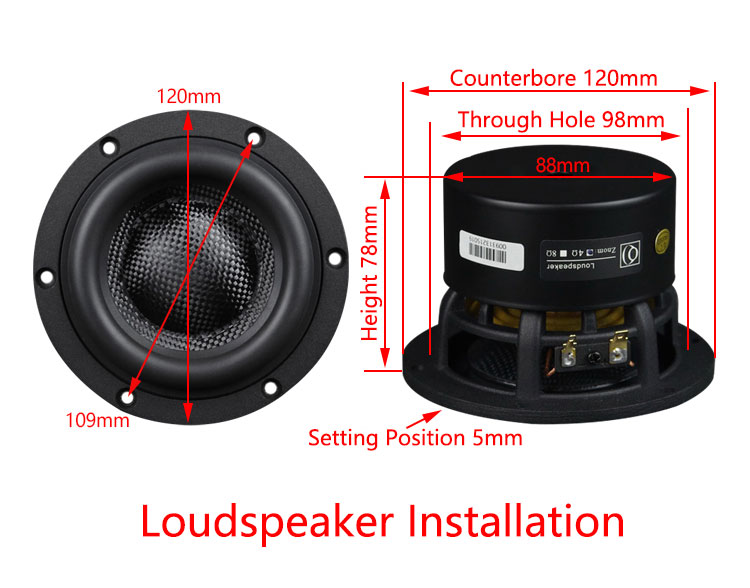 - Rated impedance: Optional 4Ω/8Ω