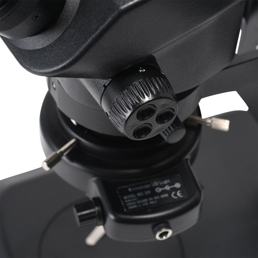 - Binocular head with 45 degree inclined 360 degree swiveling eye tubes