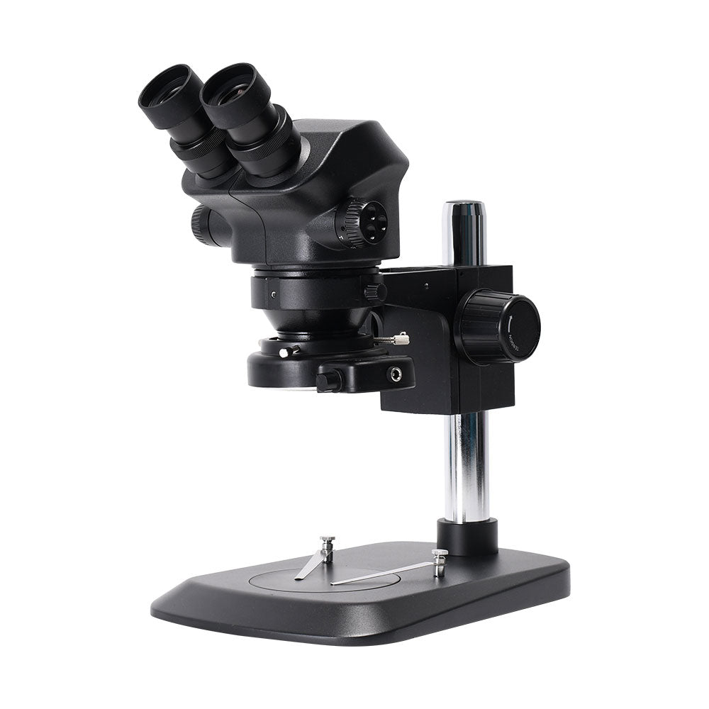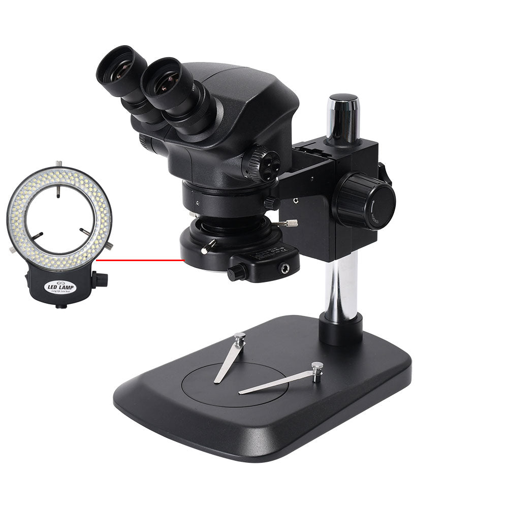 This stereo microscope has a 144-LED ring light that offers super widefield optics and 3.5X-100X zoom magnification power with a cool light illumination system. It is an ideal instrument for industrial inspection and/or biological lab applications. This microscope is perfect for gemologists, manufacturing engineers, dental lab technicians, and anyone in electronic and semiconductor industries.