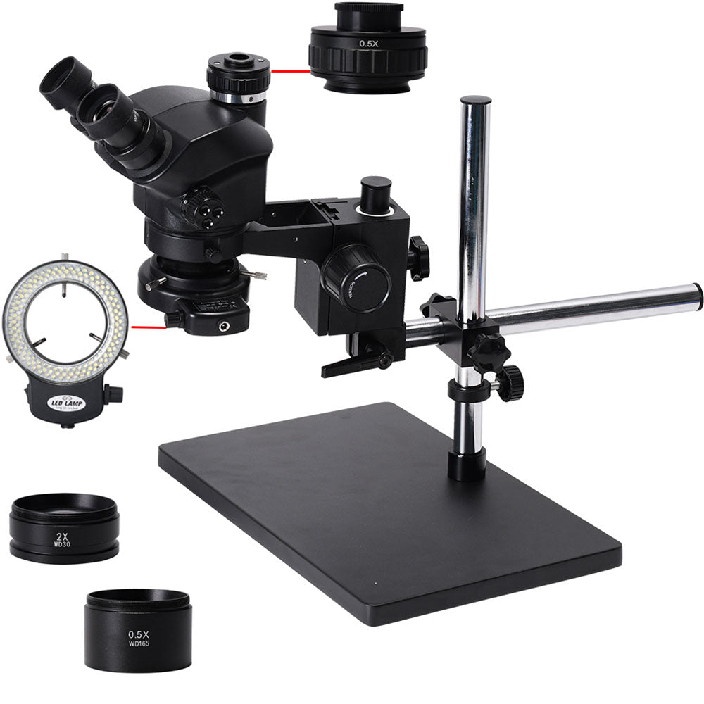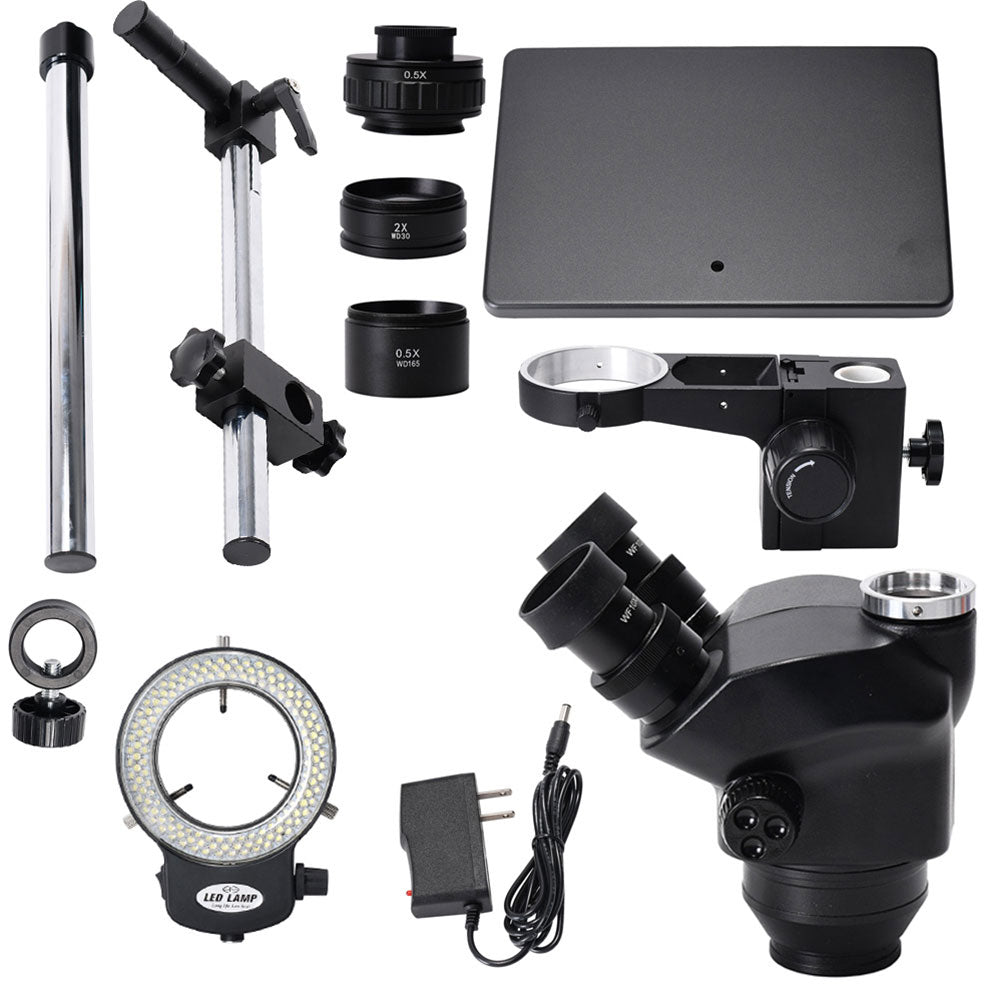 3.5X-100X Trinocular Microscope w/ Universal Bracket 144-LED Light For Soldering PCB Jewelry Repair