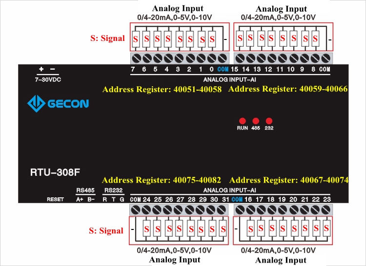 32 Analog Input Data Acquisition For Modbus RTU IO Module RTU-308F 32AI + 4-20mA 0-10V (RS485)