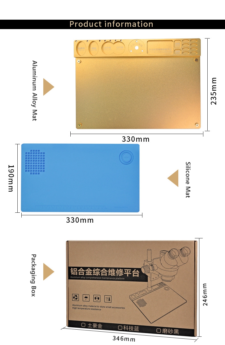 330x235x15mm Soldering Mat High Temperature Resistance Aluminum Alloy Maintenance Platform for Precision Electronics