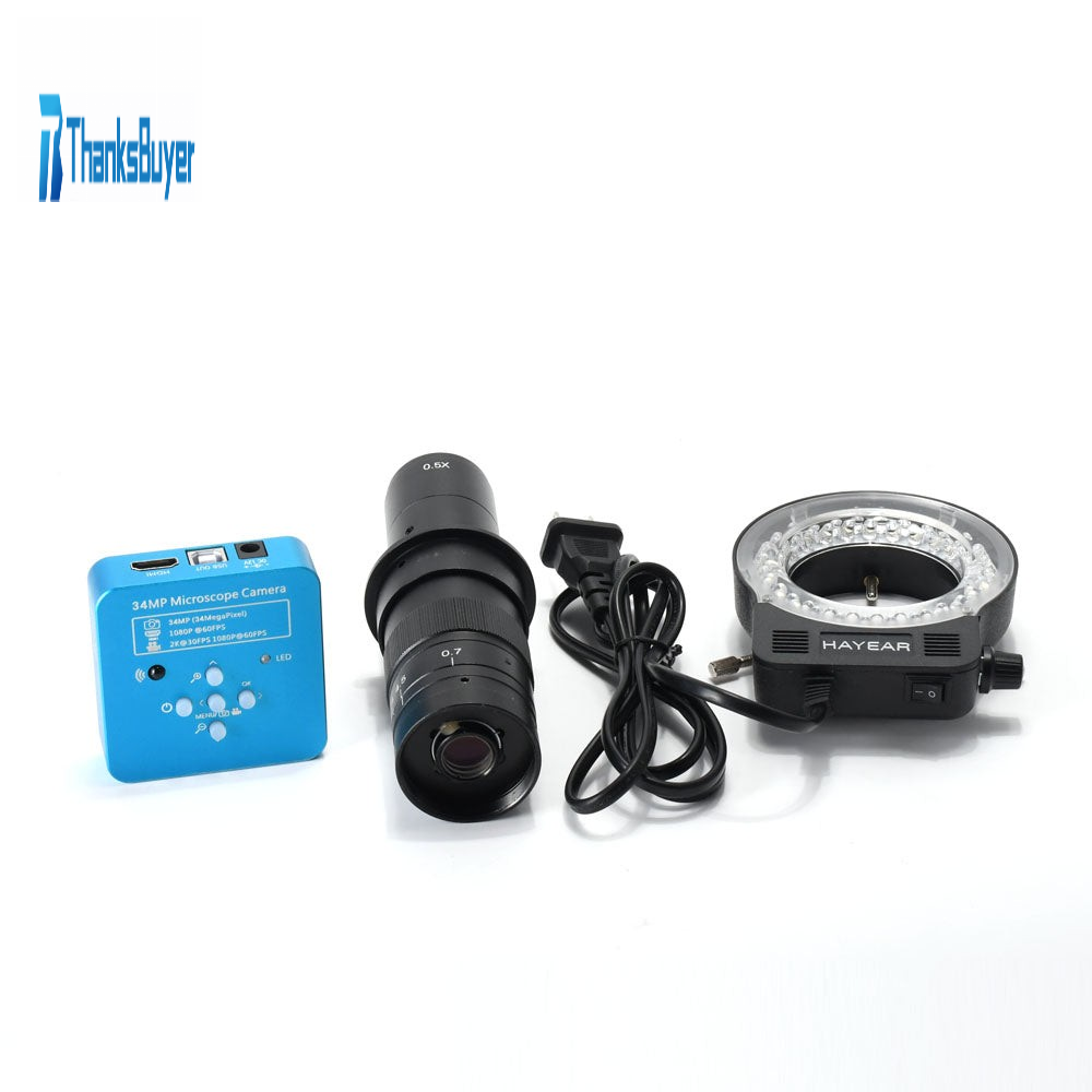 34MP USB Industrial Microscope Camera Stand Kit 2K 1080P w/ 180X C-Mount Lens 56-LED Ring Light