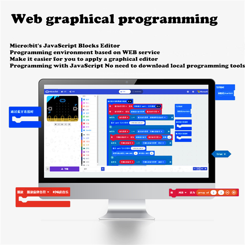 - Programming Software: micro:bit (graphic programming / JavaScript). Link: http://makecode.microbit.org