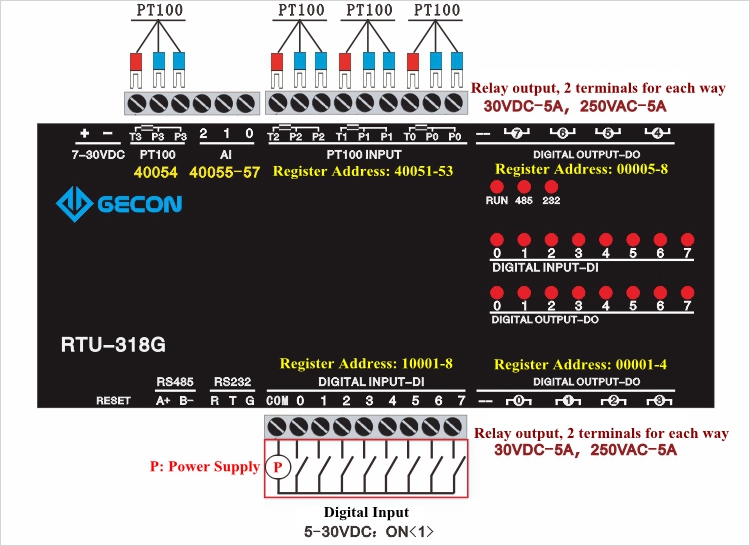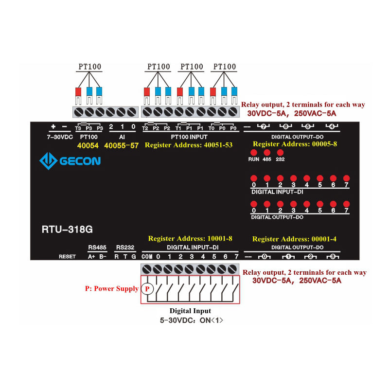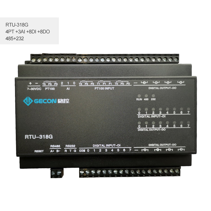 4 PT100 + 3AI + 8DI + 8DO Data Acquisition Industrial For Modbus RTU IO Module RTU-318G RS485+RS232