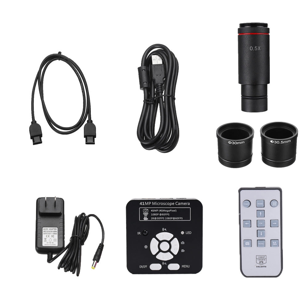41MP Industrial Microscope Camera HDMI Kit 2K with 0.5X C-Mount Adapter 30mm & 30.5mm Adapter Rings