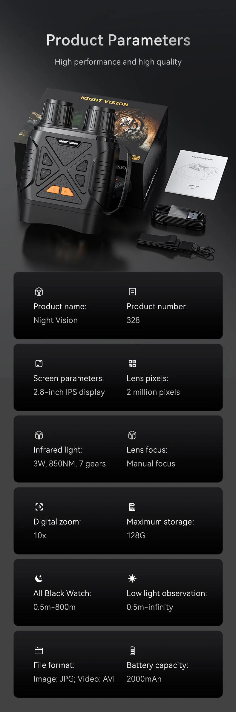 4K HD Full Color Night Vision Device 1080P Infrared Camera Binocular 10X Night Vision Goggle with 2.8-inch IPS Screen