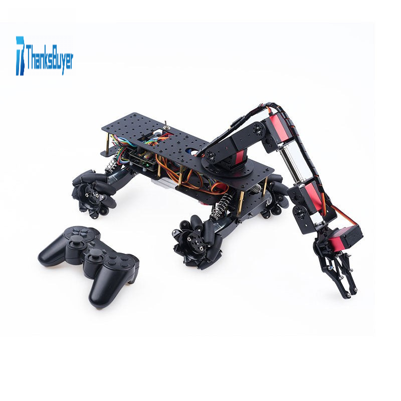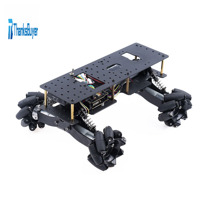 The 4WD Shock-Absorbing Smart Car uses metal, high-wear-resistant Mecanum wheels as driving wheels, ensuring long-term durability and smooth rotation thanks to internal bearings in the rollers. It is driven by GA25-370 motors with encoders, enabling real-time feedback on operating status for better control of the car's movement trajectory. A 1:74.8 gear ratio provides sufficient torque output to power the car. If gripping functionality is needed, a 4-axis serial robotic arm can be added. Controlled through inverse kinematics, the 25kg high-torque servo performs gripping operations by simply inputting object coordinates.