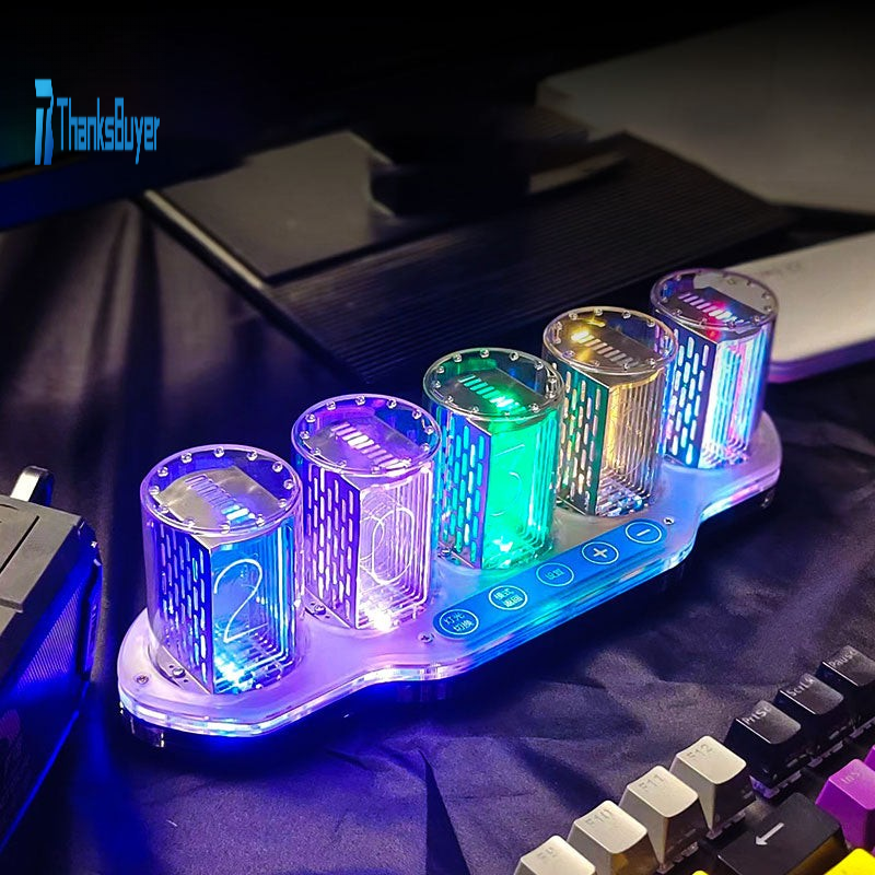 5-Digit RGB Pseudo Glow Tube Clock Finished Digital Clock Desktop Ornament Gift for Friends & Family