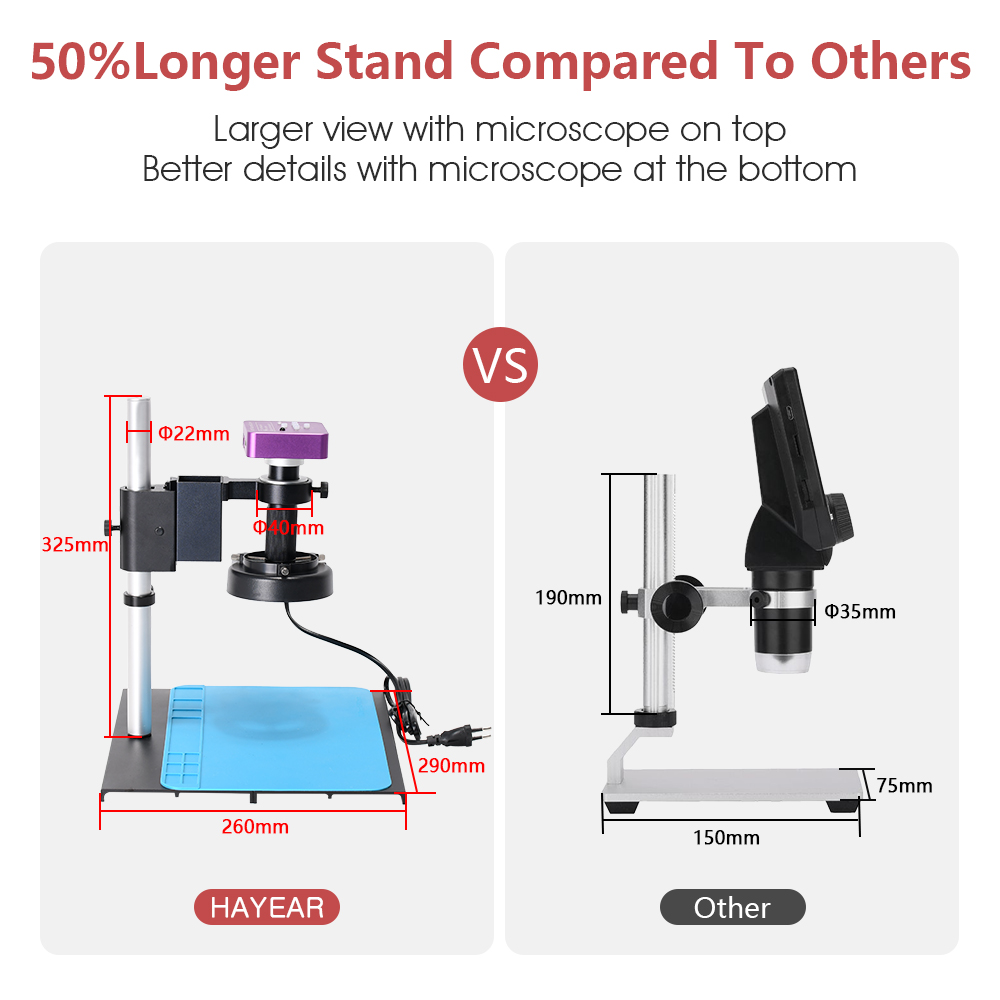 - Objective Magnification Power by 0.1-1.3X (about 10-150X on the display)