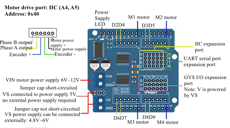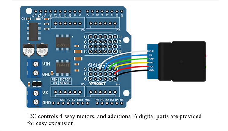 - With a IIC motor drive board, 5-way SR09 can be connected in parallel at most. If a IIC expansion board is used, up to 20 SR09 connected in parallel