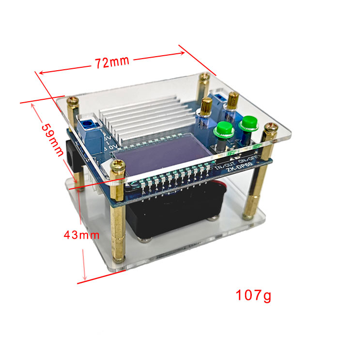 - Can step up and step down. You can adjust output voltage 0.5-30V, and adjust limiting current 0-6V