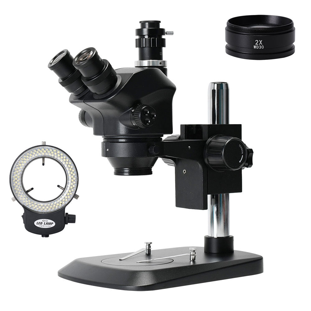 7X-50X Black Trinocular Microscope Stereo Microscope Kit w/ 144-LED Ring Light 2.0X Objective Lens