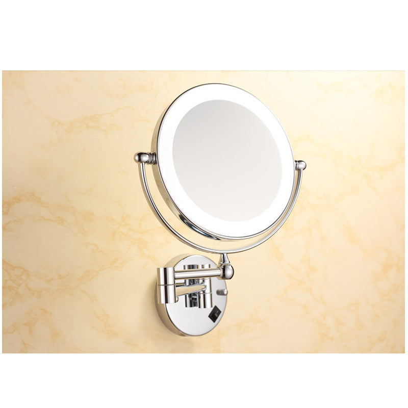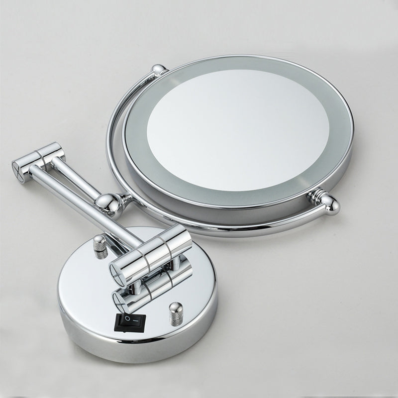 8" Wall Mount Lighted Makeup Mirror Folding 3x Magnification Double-Sided Chrome Finish