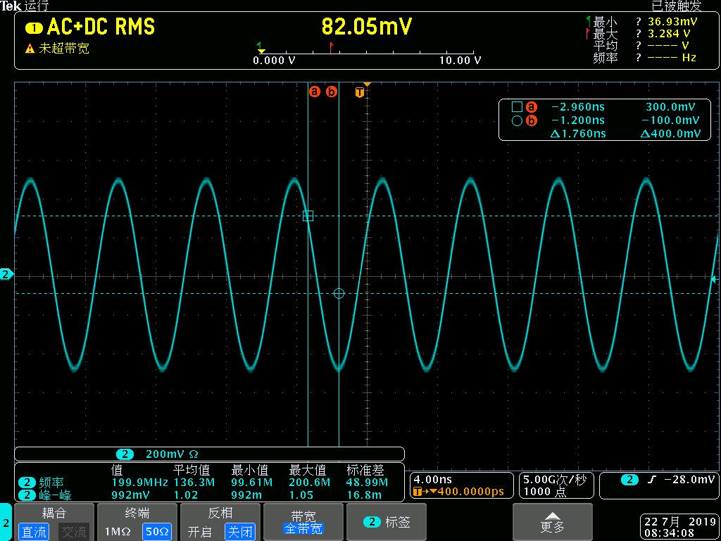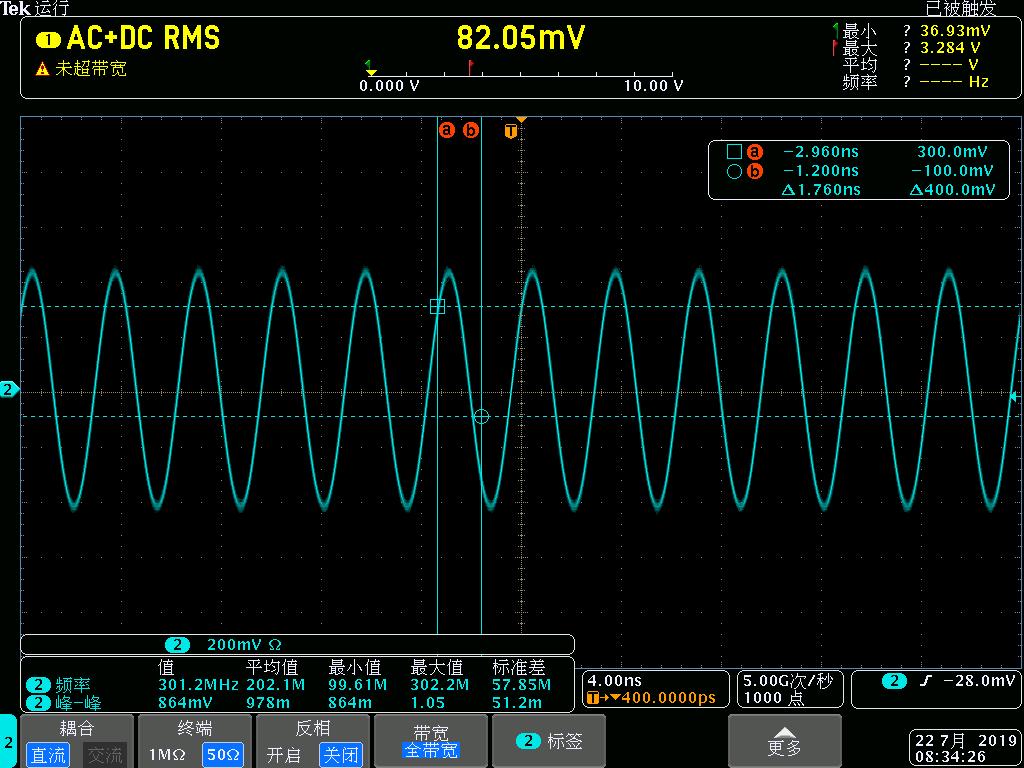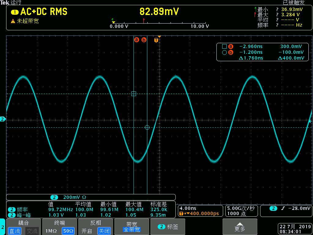 - Output amplitude control words 0-1023 correspond to an output amplitude of 280mVPP - 1.1VPP (under 50 ohm impedance)