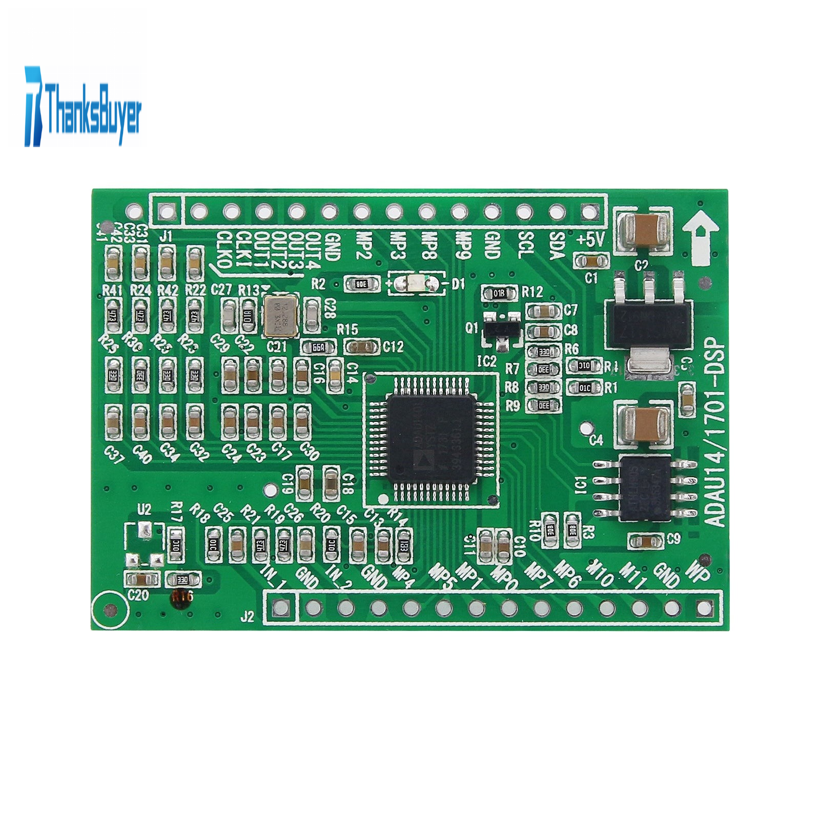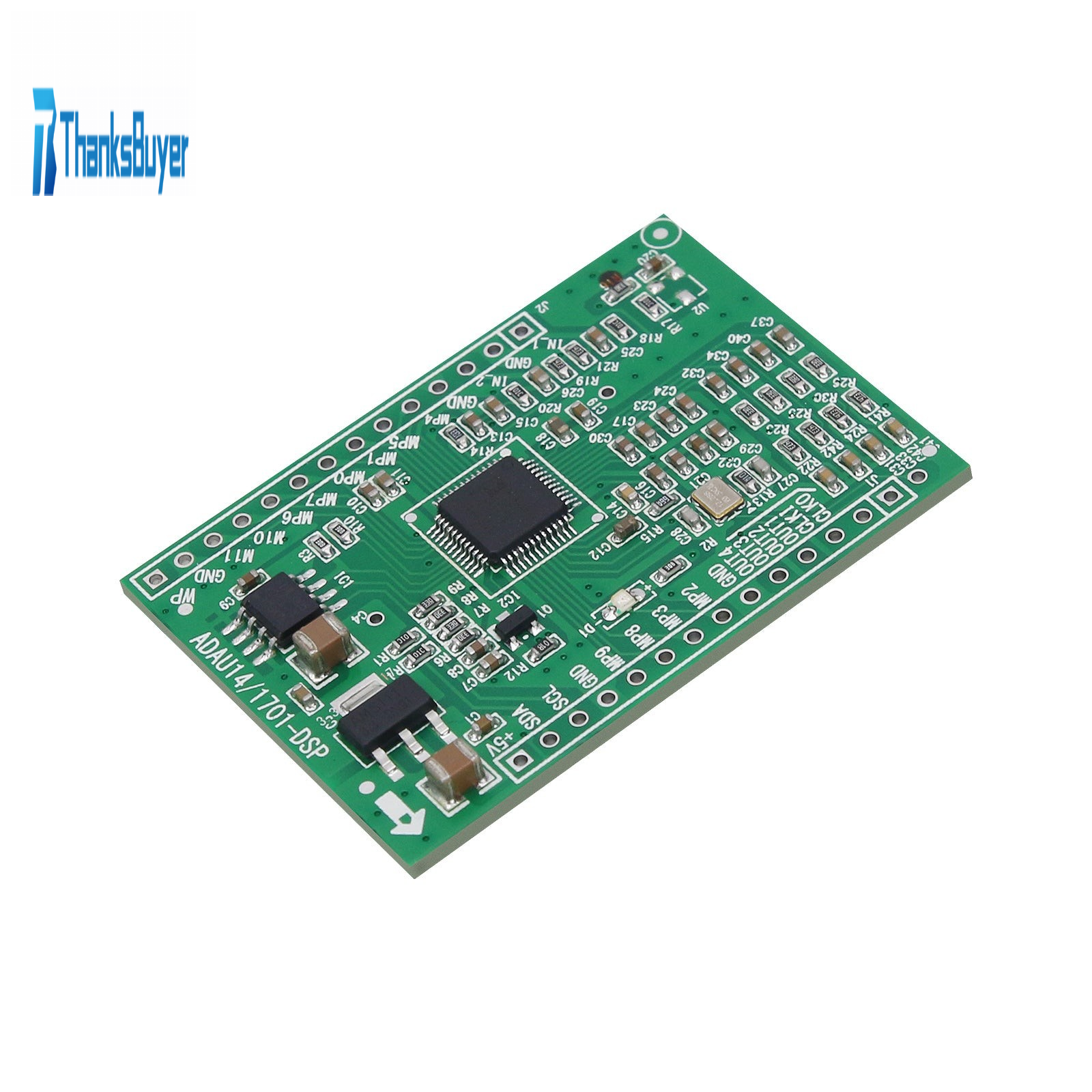 - This edition is suitable for ADAU1401/1701/1702 learning and product use. ADAU1401 is more stable than ADAU1701 in the bad working environment of -40℃ -105℃ (ADAU1701 is generally 0-70 degrees). The program can be used and the other indexes are the same. With power on self start, it can run independently from SCM. The whole function port is brought out, which can expand the digital I2S input / output / key function, /LED driver / auxiliary ADC (potentiometer simulation) / encoder volume control.