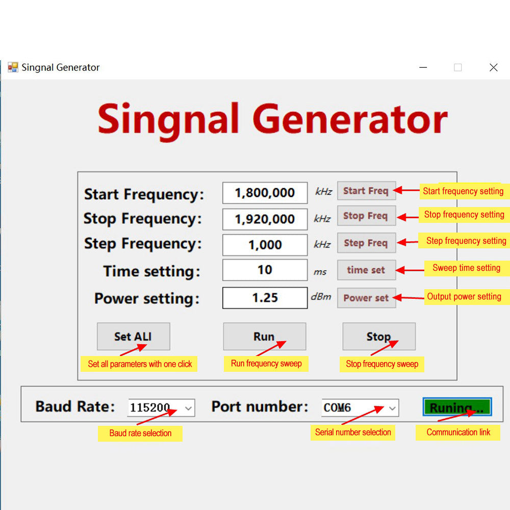 1. Frequency range of output signal: ADF4351(35MHz-4.4GHz)