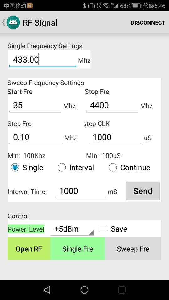 - PC software control: point frequency or frequency sweep output. It can be used to control RF output switch and control output power.