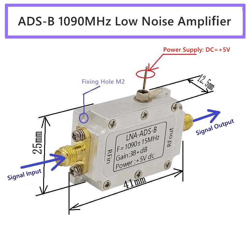 - This RF module is carefully designed using two-stage low noise amplifiers and two-stage dedicated filters, and is used for front-end RF amplification of ADS-B receivers. It has the characteristics of high gain, low noise, and large dynamic range.