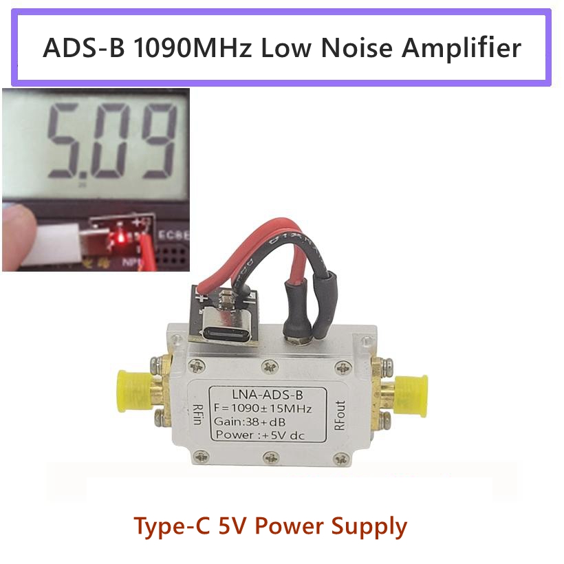 ADS-B 1090MHz LNA Low Noise Amplifier Bandpass RF Amplifier Module (with Welded Type-C 5V Power Supply Module)