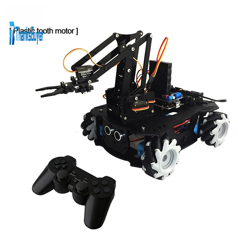 AGV Robot Car Chassis Unassembled w/ Mecanum Wheel Plastic Gear Motor Wireless Controller Robot Arm