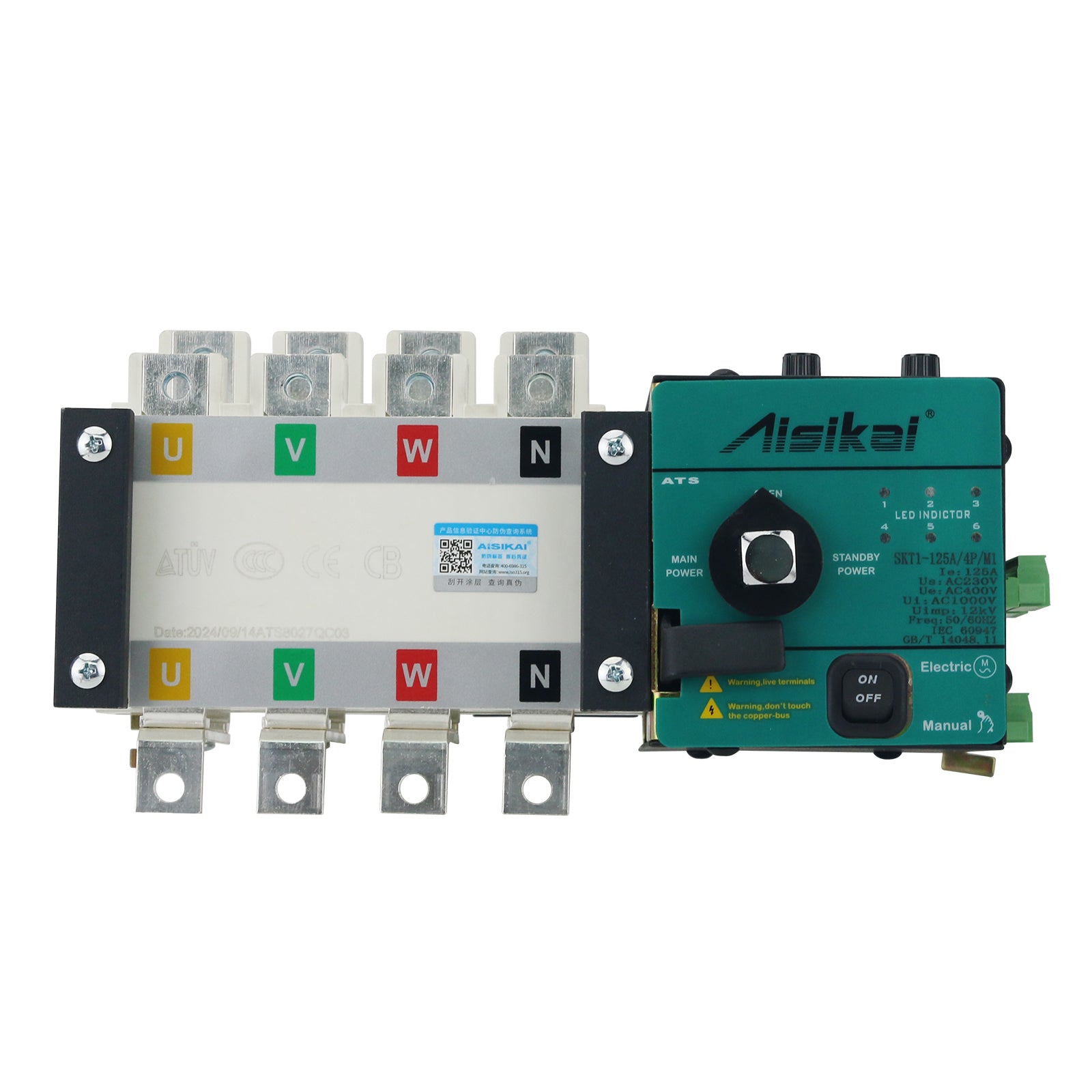 AISIKAI SKT1-125A Dual Power Automatic Transfer Switch SKT1-125/4P for Main & Standby Power Sources