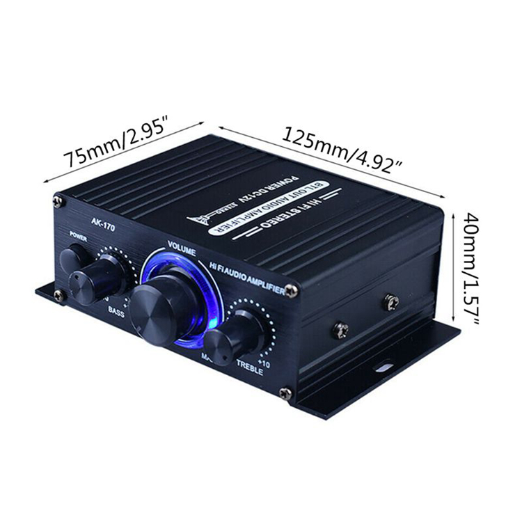 AK-170 Mini Amplifier 20+20W HiFi Stereo Amp 2 Channel Power Amplifier With Blue LED Light Ring