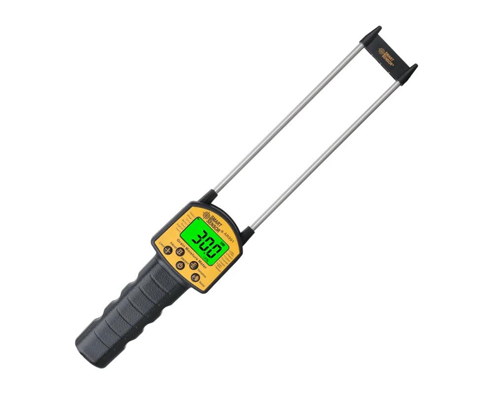 - The grain moisture meter is used to measure the percentage of water in a given substance. This information can be used to determine if the material is ready for use, unexpectedly wet or dry, or otherwise in need of further inspection. Grain can be measured: rapeseed, sesame, soybean meal, cotton, soybean, peanut,barley, rice, sorghum, watermelon seed, paddy, wheat, maize, fodder.