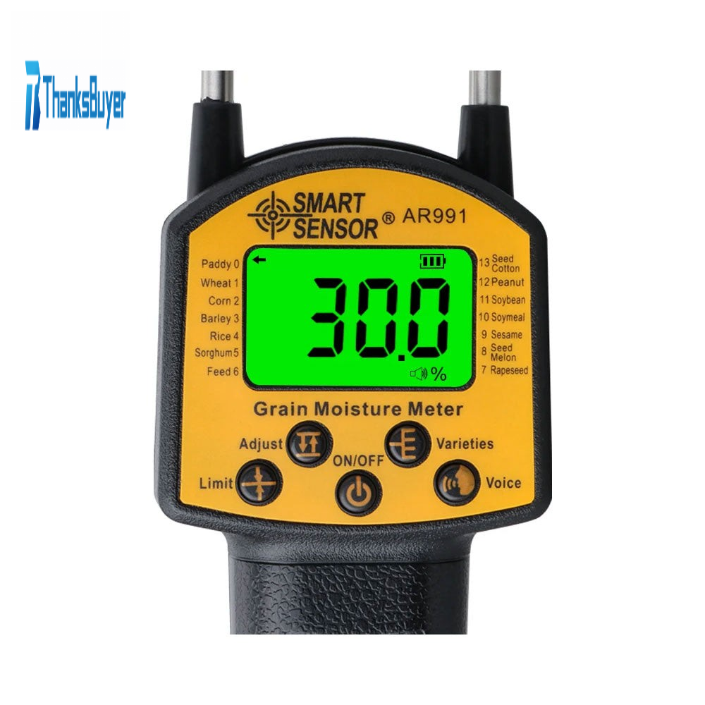 AR991 Grain Moisture Meter Voice Prompt Hygrometer with HD Backlight Display for Corn/Wheat/Rice/Bean