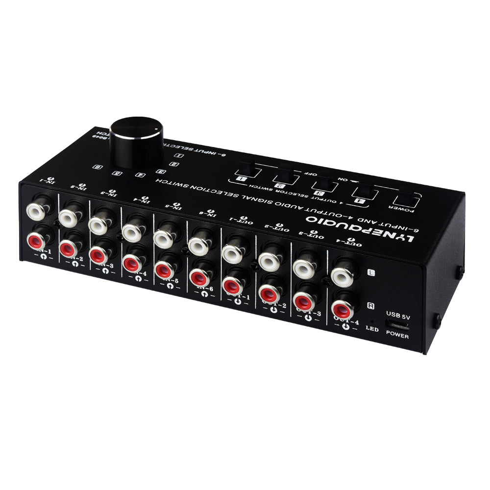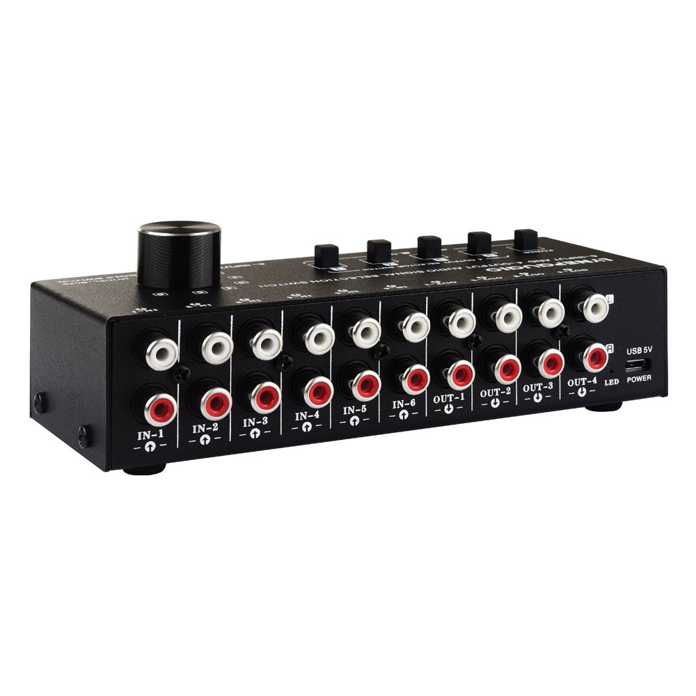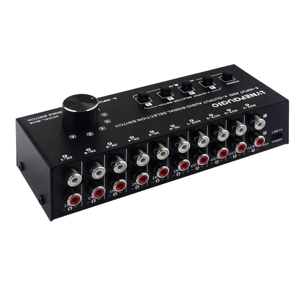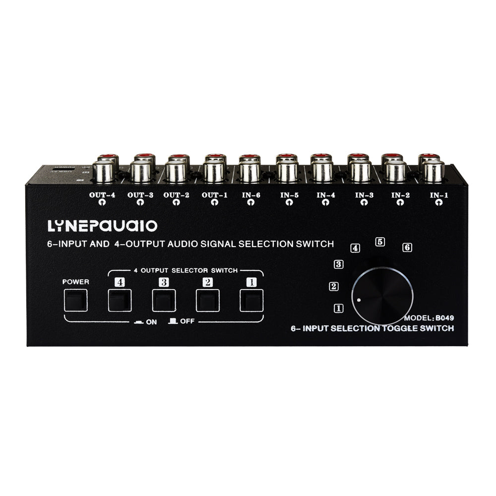B049 6-Input 4-Output Audio Switcher Audio Source Selector Featuring Output with Separate Switches