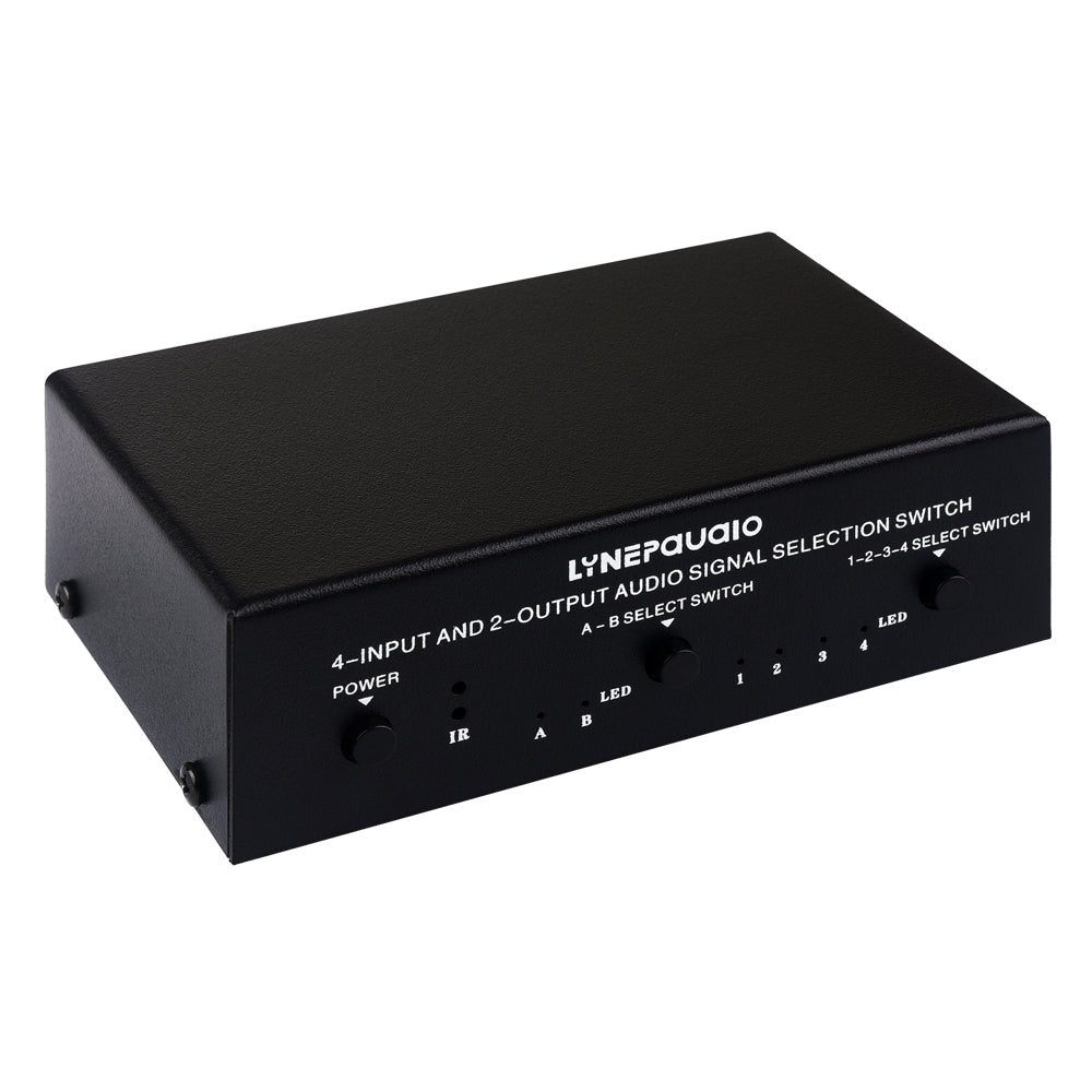 - 4 sets signal audio source select shift device solve the complex circuit plug in and out operation, unify connect the equipment signal source which need input to the shift device then easily convenient to select