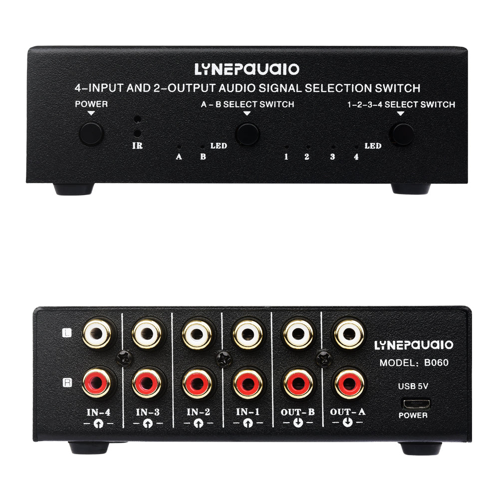 B060 Audio Selector Audio Switcher 4 IN 2 OUT or 2 IN 4 OUT Lossless Bidirectional Switching