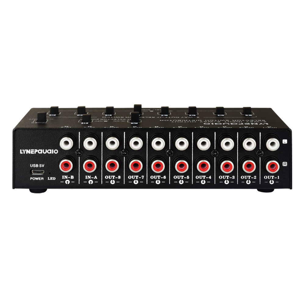 - 8 sets stereophonic output has independent switch, able to start at the same time, also able to be closed independently, start at the same time no consumption at the signal source tone quality and volume.