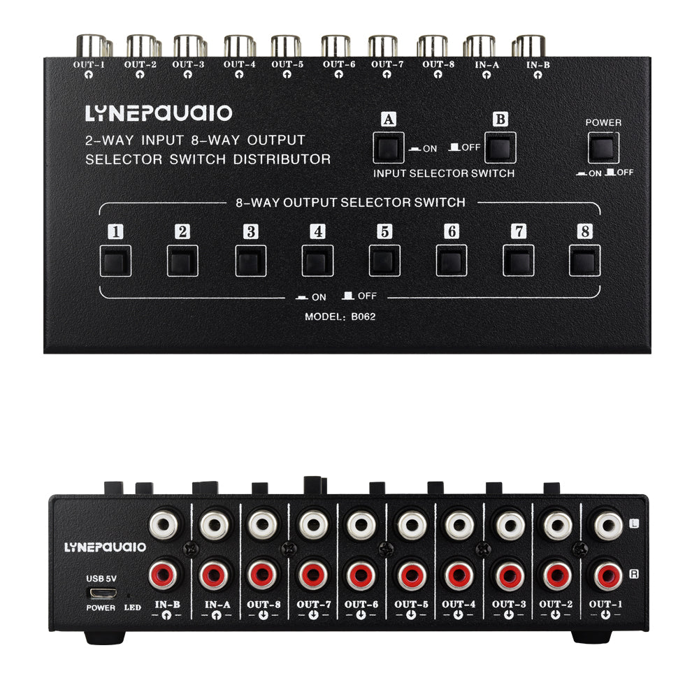 B062 Audio Switcher Audio Selector 2-Way Input 8-Way Output Supporting 2 Groups of Mixing Input