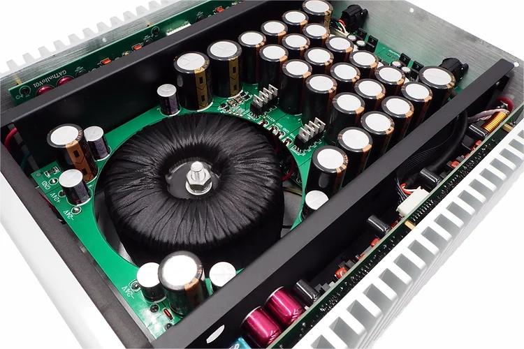 - Dual channel drive design, each channel is equipped with 4 pairs of output power transistors. At the same time, the chassis adopts a 365MM finned heat dissipation structure on both sides, which quickly dissipates heat and easily handles the huge power consumption during high loads.