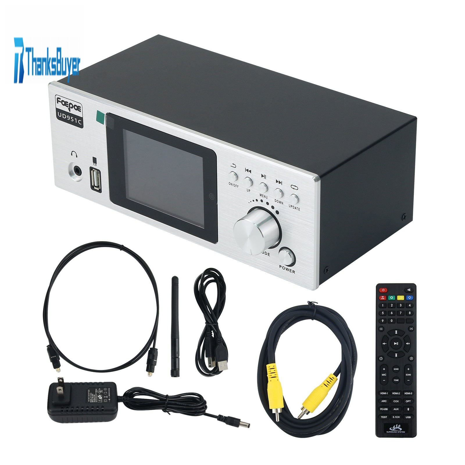 - Output interface: HDMI-compatible + optical fiber + 5.1CH + 3.5mm earphone port