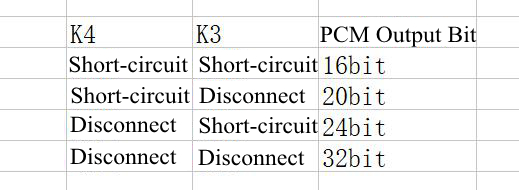 2.Set the output bit number of PCM output mode through K3 and K4: