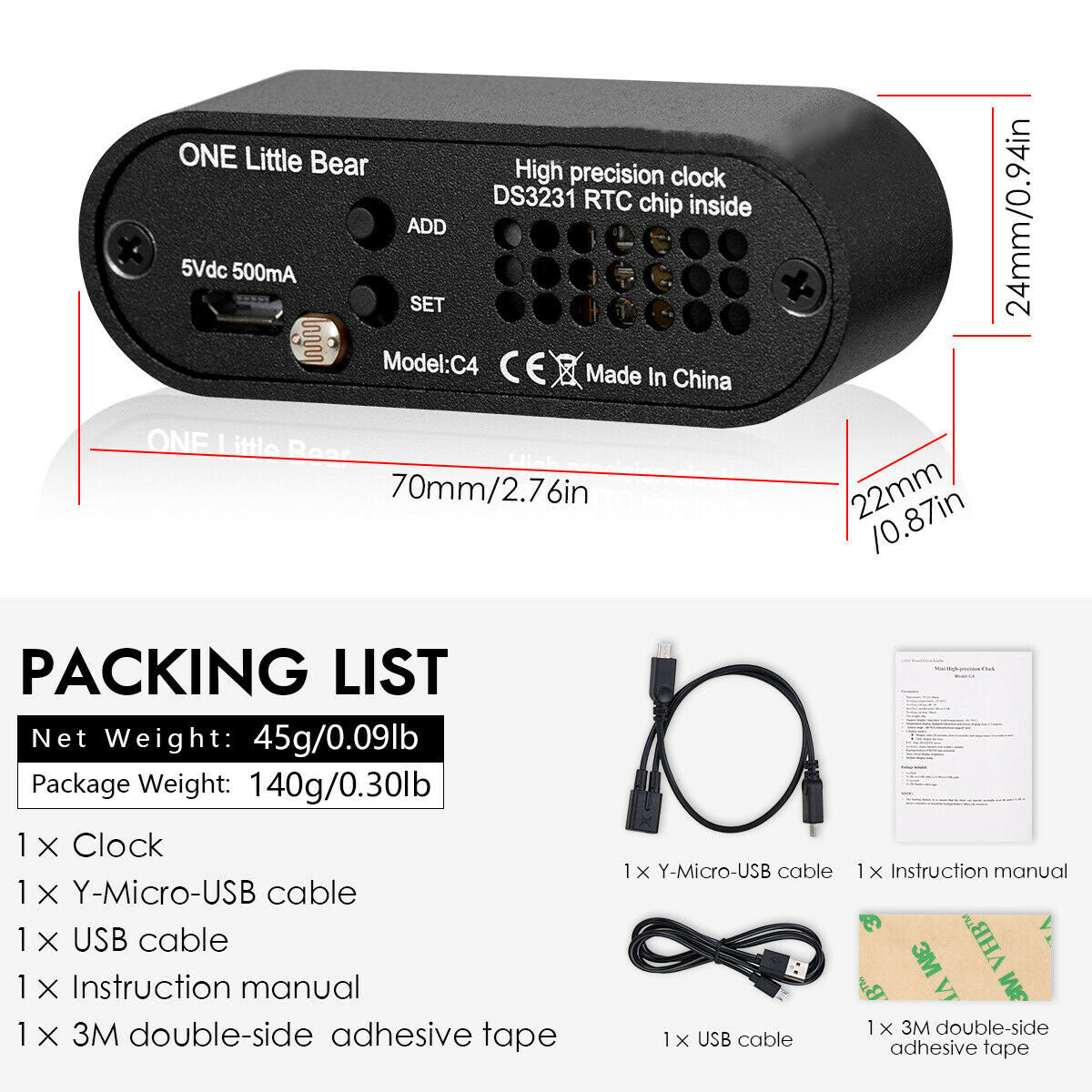 Blue LED Digital Clock USB Home Office Car Clock Large Display C4 DS3231 RTC Chip