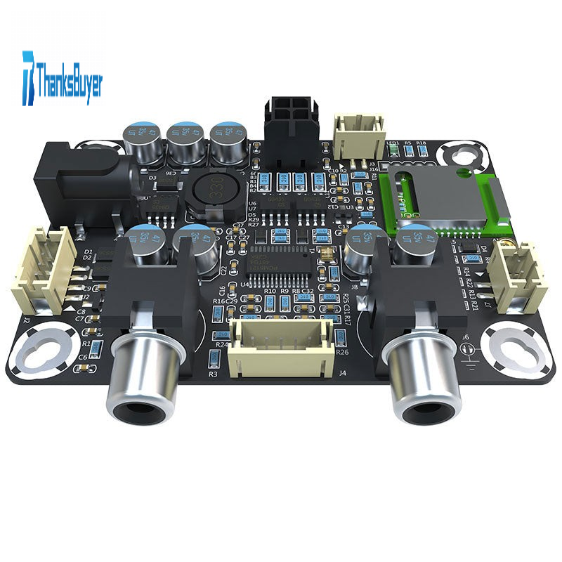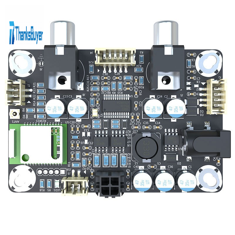 AA-AB41136 is a Bluetooth receiver board with Bluetooth V5.0, supporting for various audio format as aptX, aptX HD, aptX LL, SBC and AAC. High performance DAC ensures high quality audio transmission. Terminal interfaces mounted for analog output make it easy for integration with audio amplifiers. In addition to Bluetooth receiver board, AA-AB41136 can work as a low power stereo audio amplifier, delivering 3W per channel into a 4Ohm load, quite suitable for bookshelf amplifier, desktop audio, garden audio, hotel audio and DIY applications that needs wireless audio connection. A DC5V-32V power supply is required.