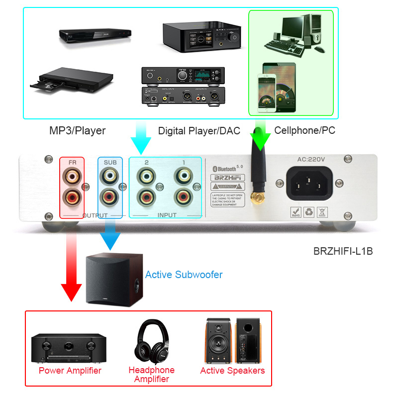 BRZHIFI-L1B Class A Preamp Tuner Preamplifier Bluetooth 5.0 DAC Support Two-Channel Wired Input