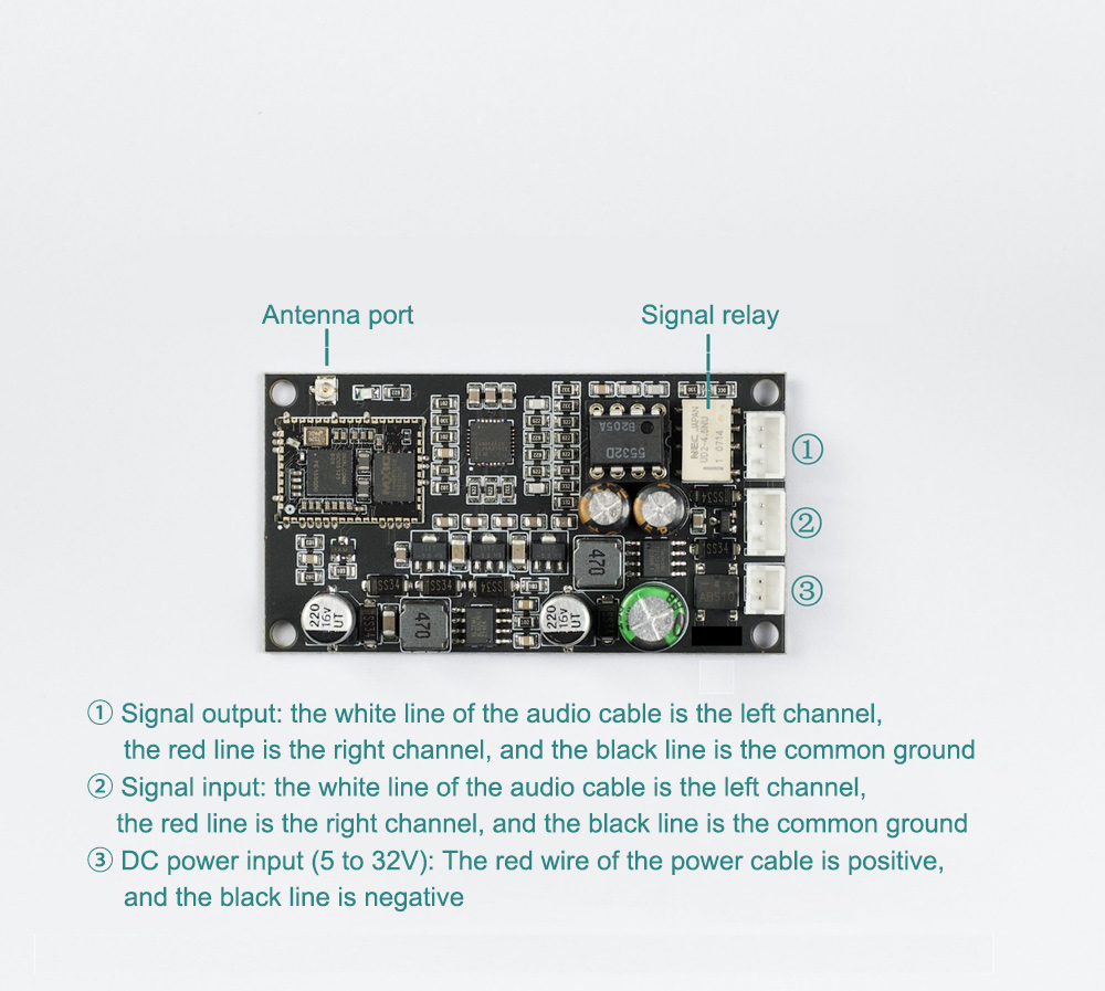 - One AUX input makes it easy to connect other wired sources to switch. The board adopts the Bluetooth priority principle, that is, when there is no Bluetooth connection, it will automatically work in the AUX state, which is very convenient to use. The switch between AUX and Bluetooth is carried out by using Japanese original high-precision relays to ensure lossless signal docking.