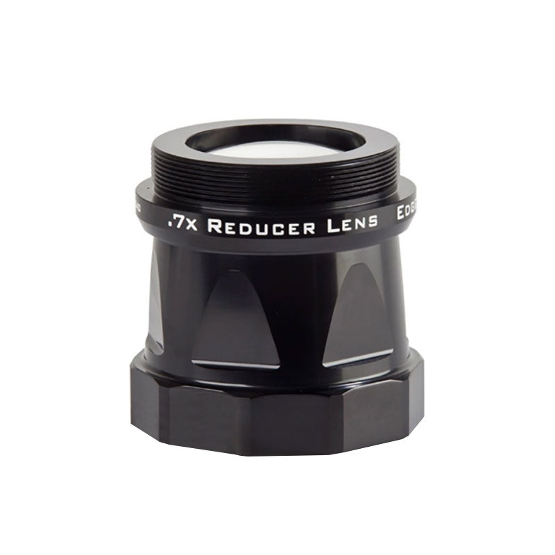- De0.7x Reducer Lens for EdgeHD 800VanCelestronAdds a full f-stop of exposure rate and widens the field of view of the 8 "configuration of Celestron's EdgeHD optical tube. This telescope accessory has a fully multicoated optical path with high transmission lanthanum glass elements with blackened edges, and provides color-true images that are high in contrast and clear from mid-to-edge. A 105mm focusing distance holds additional image accessories and a wide range of cameras, including the Nightscape CCD and DSLRs. The 0.7x reducer lens has an aluminum body that has been precisely machined to ensure the exact distance and alignment of the optical elements.