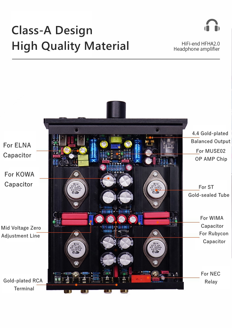 Class-A HiFi 4.4 Balanced Headphone Amplifier High Power Drive Preamplifier No Low Noise Isolation