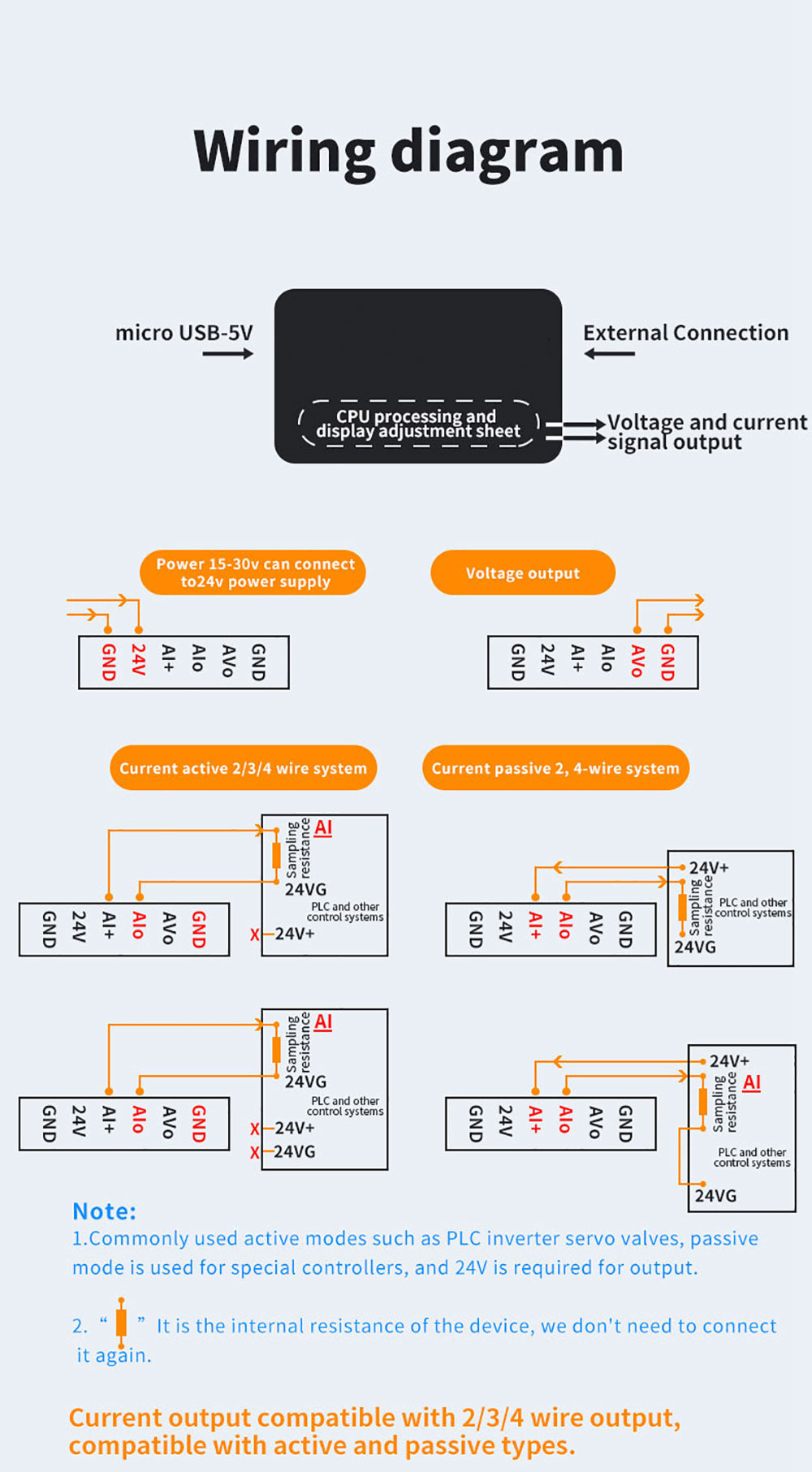 - DC 15-30V external power supply, which can share the 24V power supply of PLC and other equipment