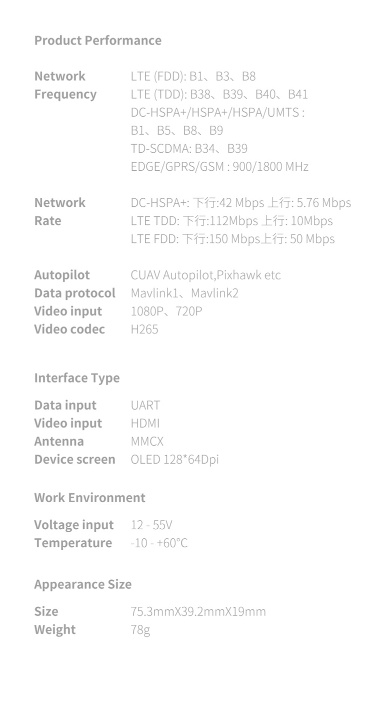 CUVA LTE-LINK SE 4G Image Transmission Data Transmission Module Kit 1080P for RC FPV Drones UAV