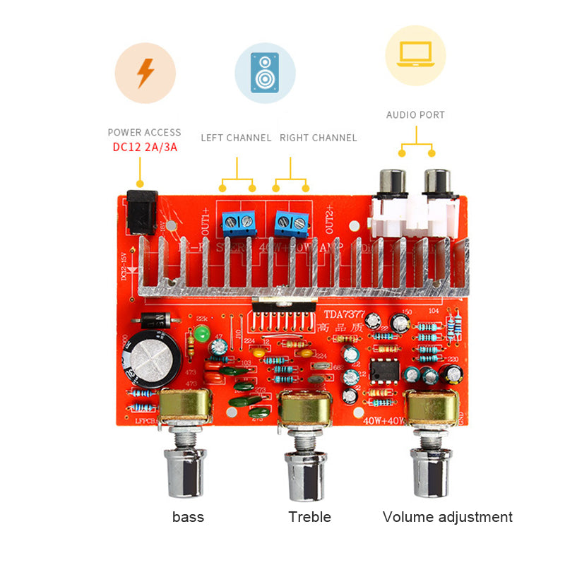 - Adopts TDA7377 integrated chip, stereo dual-channel output 40W*2.
