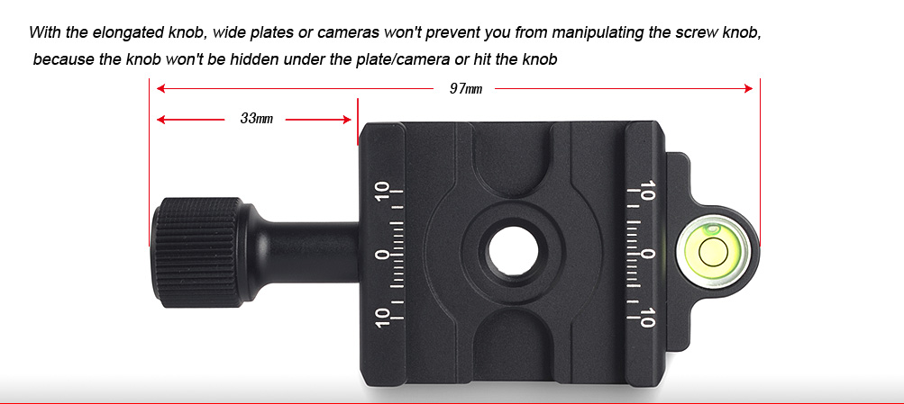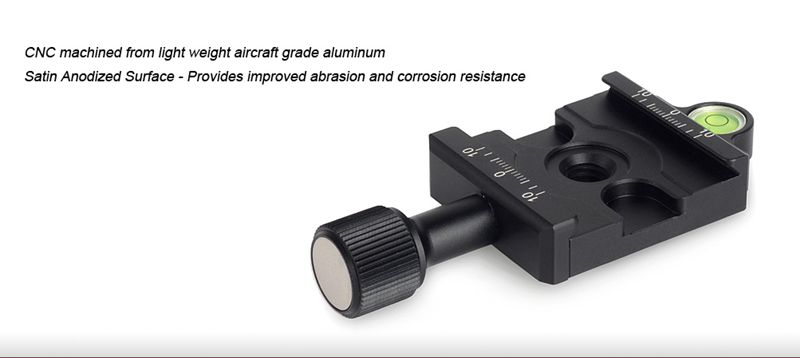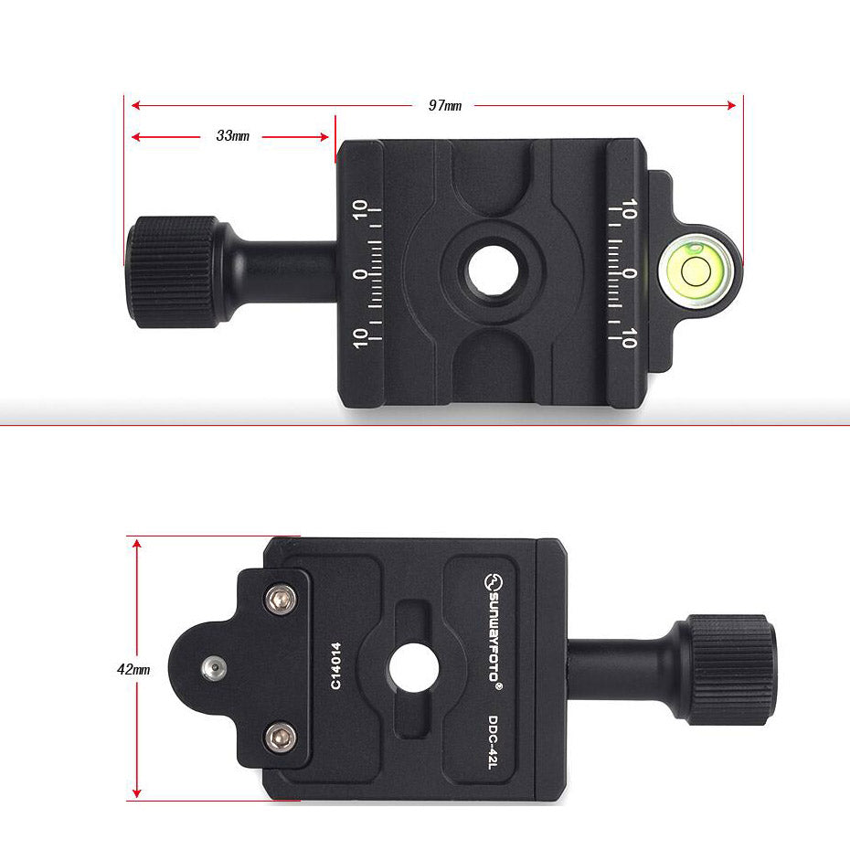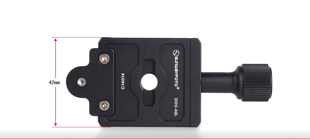 DDC-42L Screw-Knob Clamp, CNC cutting machine from light weight aircraft-grade aluminum, stain anodized surface finish for better abrasion and corrosion resistant. For all Arca-Swiss style plates.