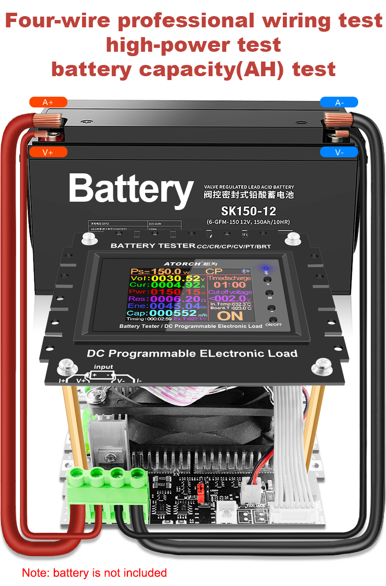 - Support 4-wire and 2-wire wiring systems. The four-wire system has higher detection accuracy and is more professional. 150W high power discharge aging test. When using the four-wire wiring method, the voltage measurement is not affected by the voltage drop of the wire, making the voltage measurement more accurate. It can be used to test various data such as voltage, current and capacity of various lithium batteries and other batteries. During long-term 150W load discharge aging test, the temperature should be maintained at about 50~80℃. Intelligent temperature control light effect fan and built-in large discharge tube make the power larger and more reliable. Test the overall capacity, use time and aging performance of batteries